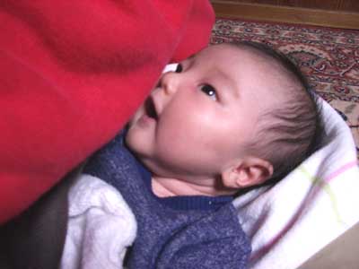 (お茶飲ませてたけど、少しで「いら〜ん」というので母乳にしてた)
