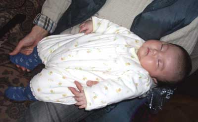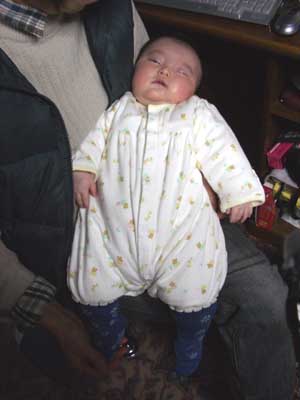 あんよは寒そうだったので、靴下を履かせてみました。
