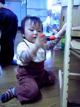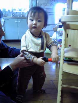 「ぼくもやる〜!父しゃん邪魔やわ」