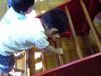 この間(9/8)は登れなかった、滑り台のハシゴ段。