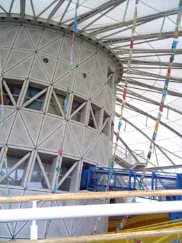 外周りと内回りにらせん状の坂道廊下が付いていて